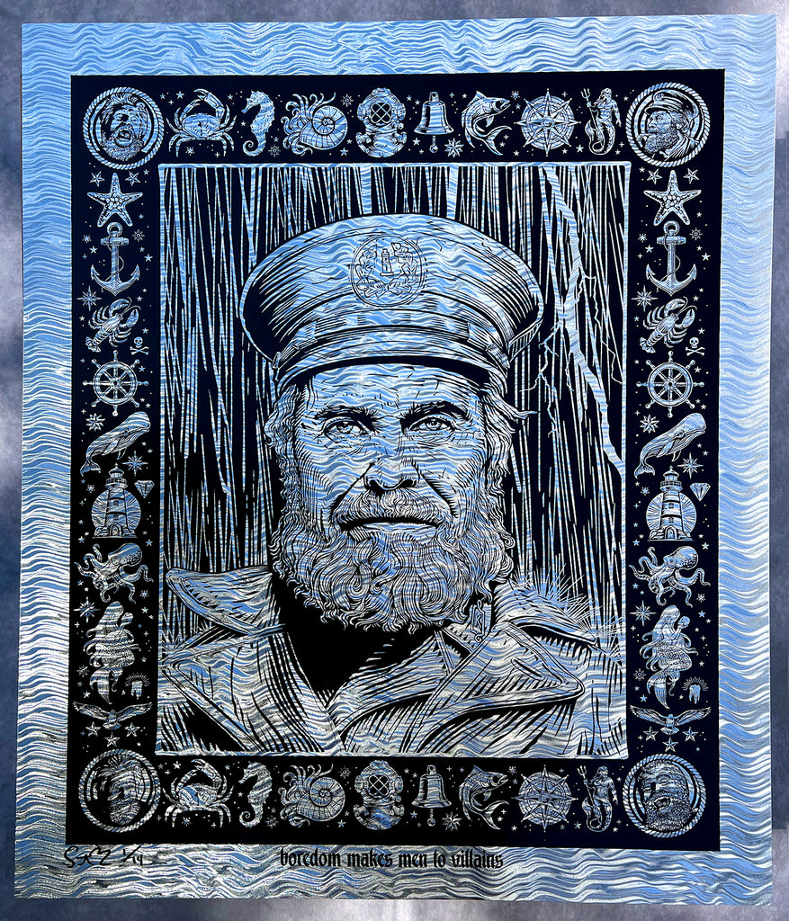I'm embarrassed to say that I first watched The Lighthouse not in a grand theater or large screen tele but on a teeny iPad screen one night while I struggled to fall asleep. The experience watching it left me feeling as though I was slowly going insane. The claustrophobic nature of the film and the jittery and unnerving paranoia between Pattinson and Dafoe left my head swimming. I thought it was one I'd never watch again. But the next morning I found myself sketching Dafoe's face and thinking about nautical imagery. And then a week later I did rewatch the movie. And then twice more after that in the following month. Much of the art I end up loving most starts with an almost negative reaction to the work. This is also true for many of the bands I listen to. In the last year I've gone down an obsessive Xiu Xiu rabbit hole and have now consumed every note they have ever recorded in spite of not initially liking their music on my first listens. If any of this resonates with you then this art is for you. It was something I NEEDED to make.
