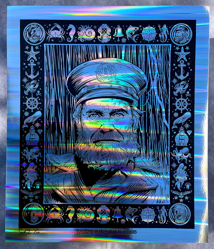 I'm embarrassed to say that I first watched The Lighthouse not in a grand theater or large screen tele but on a teeny iPad screen one night while I struggled to fall asleep. The experience watching it left me feeling as though I was slowly going insane. The claustrophobic nature of the film and the jittery and unnerving paranoia between Pattinson and Dafoe left my head swimming. I thought it was one I'd never watch again. But the next morning I found myself sketching Dafoe's face and thinking about nautical imagery. And then a week later I did rewatch the movie. And then twice more after that in the following month. Much of the art I end up loving most starts with an almost negative reaction to the work. This is also true for many of the bands I listen to. In the last year I've gone down an obsessive Xiu Xiu rabbit hole and have now consumed every note they have ever recorded in spite of not initially liking their music on my first listens. If any of this resonates with you then this art is for you. It was something I NEEDED to make.